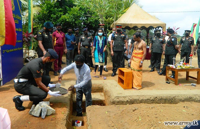 Major General Upul Werakoon, General Officer Commanding, 65 Division graced the occasion as the chief guest and laid the cornerstone for its construction at Ampakamam. The commanding officer of the 3 Vijayabahu Infantry Regiment, senior officers, officers and other ranks participated in the occasion adhering to health guidelines.
