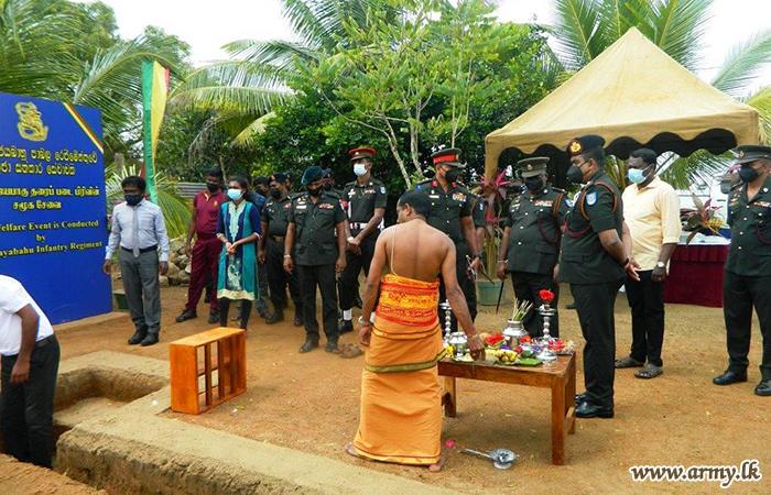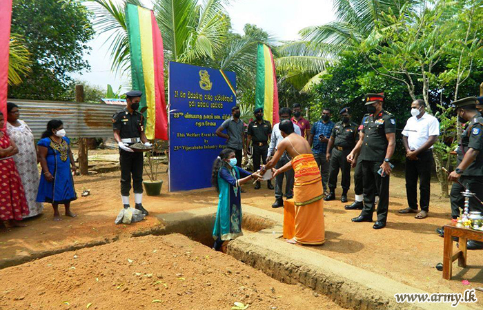 23 Vijayabahu Infantry Regiment (VIR) troops of the 642 Brigade of the 64 Division of the Security Force Headquarters- Mullaittivu with sponsorship, provided by a Senior Officer, domiciled abroad have laid the corner-stone for construction of a new house for a needy daughter and her family in the general area of Ampakamam in Manawalapaddamurippu on 19 February 2022.
