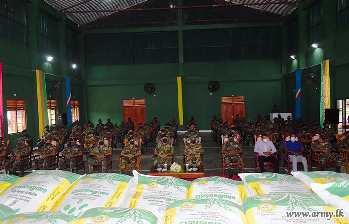 The Commander Security Forces - East, Major General Lal Chandrasiri graced the occasion as the Chief Guest and symbolically handed over the organic fertilizer to Mr R.M.D Rathnayake, District Marketing Executive at Ceylon Fertilizer Company Limited in the Eastern Province. Troops on experimental basis took the initiative in this regard.