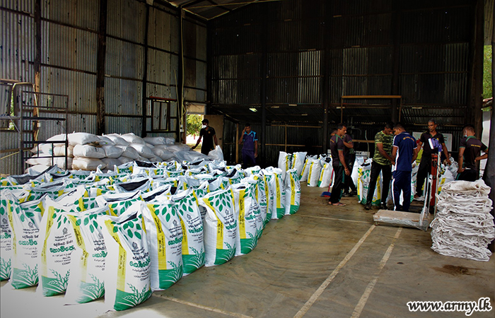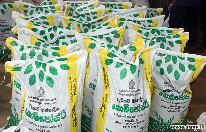 The stock of Organic Fertilizer was processed by dedicated 20 SLSR troops under the guidance of Brigadier Udaya Serasinghe, 141 Brigade Commander. Major U.A Thilakasiri, Commanding Officer of the 20 SLSR closely supervised the project.