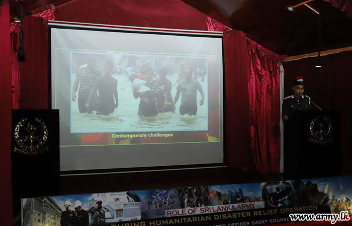 In keeping with the day’s itinerary the Commandant, SLAVF participated in the closing ceremony of the ‘Direct Enlisted Professional Officer Cadets Course No - 11’ as the Chief Guest. Upon successful completion of the stipulated course module, certificates were awarded to the professional Officer Cadets by the day’s Chief Guest. He also witnessed a syndicate presentation produced by those Directly Enlisted set of professional Officers.