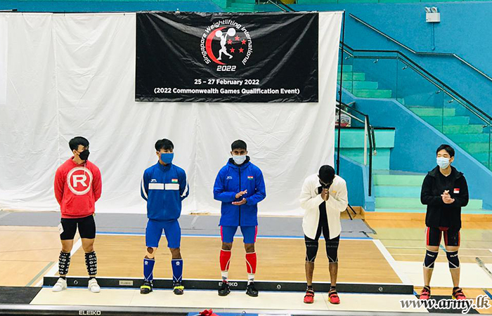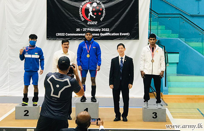 Sri Lanka Army Sergeant J.A.C Lakmal of Commando Regiment and Corporal Y.D.I Kumara of Sri Lanka Army General Service Corps won the Gold Medal in (67 kg) weight category and the Bronze Medal in (55kg) weight category respectively in the ongoing International Weightlifting Championship - 2022 in Singapore and qualify to represent the forthcoming Commonwealth Games in Birmingham, England.
