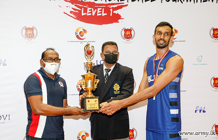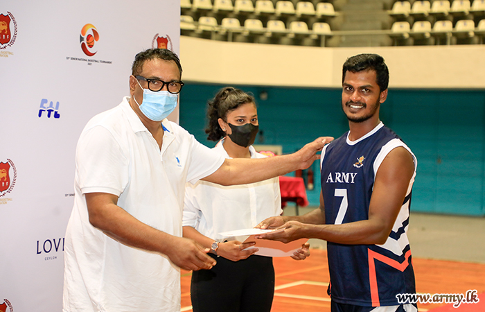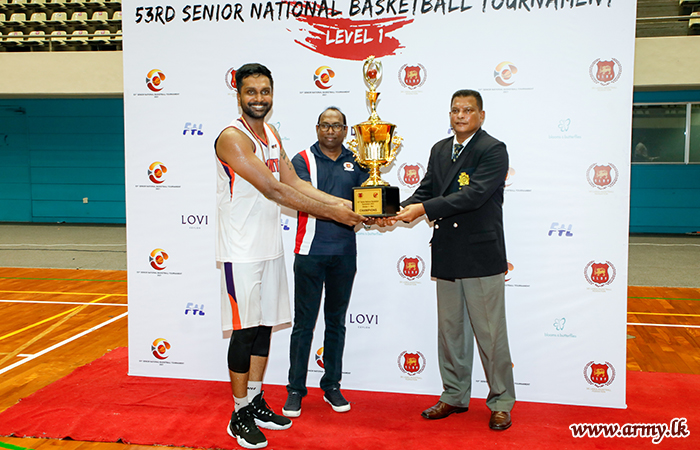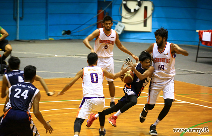 The Sri Lanka Army's Basketball Team competing against island-wide civil and military Basketball teams in the just concluded 53rd Senior National Basketball Tournament at Sugathadasa Stadium clinched the runner-up slot after a close tussle against their rival, Mercantile Basketball Team.