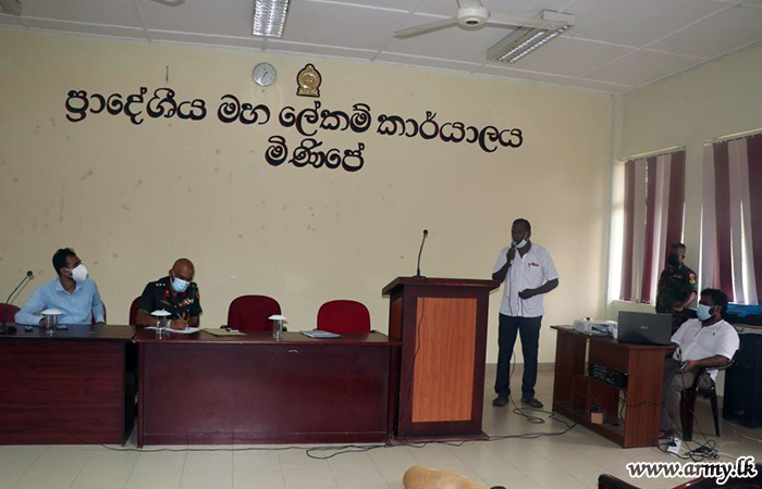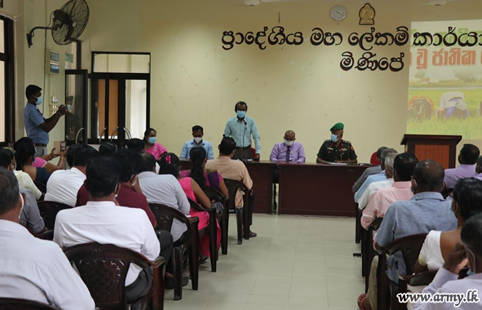 Divisional Secretary at Minipe, Agrarian officials, Colonol R.M.H Jayathissa Commanding Officers, 1 Sri Lanka Rifle Corps and around 100 farmers living in Minipe area participated in the discussion where modalities as regards the production, delivery and the use of organic manure were taken up for review.