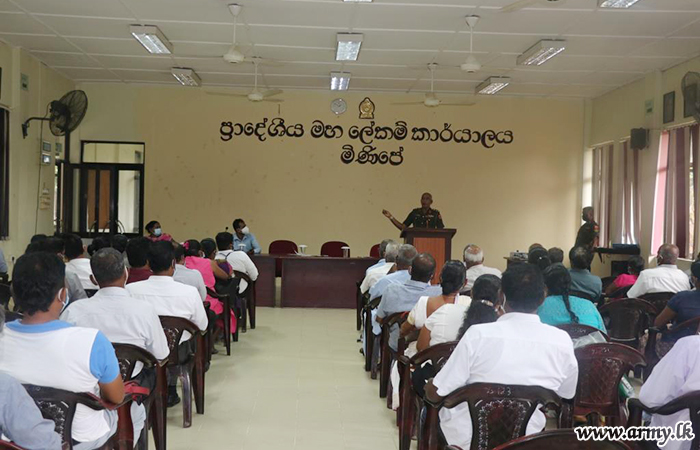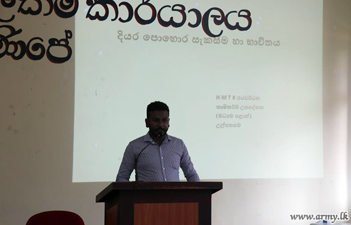 One more awareness session on the use of organic fertilizer as instructed by the Green Agriculture Operations Centre (GAOC) was organized at the Divisional Secretariat, Minipe at the invitation of Major General Kalpa Sanjeewa, General Officer Commanding, 11 Division on Thursday (24).