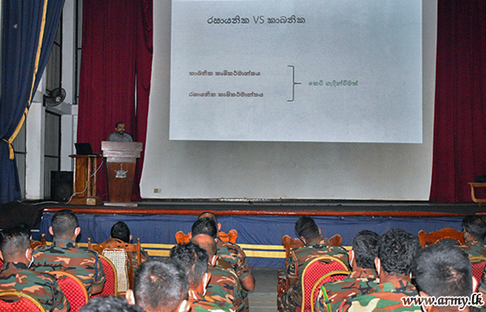 The initiative, taken by Major General Champaka Ranasinghe, Commander, Security Forces - Wanni was attended by Mr Kumudu Priyantha Gunawardana, Environmentalist and Director of Progressive Services Foundation who delivered the lecture on “Motivating the Society for a Healthy Life Style Through Green Agriculture Against Chemical Agriculture”.