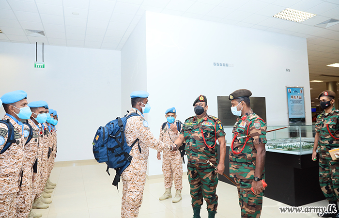 Major General Jagath Kodithuwakku, Deputy Chief of Staff and Colonel of the Regiment Sri Lanka Light Infantry arrived at the airport to extend best wishes on behalf of the Commander of the Army and to see them off to Lebanon.