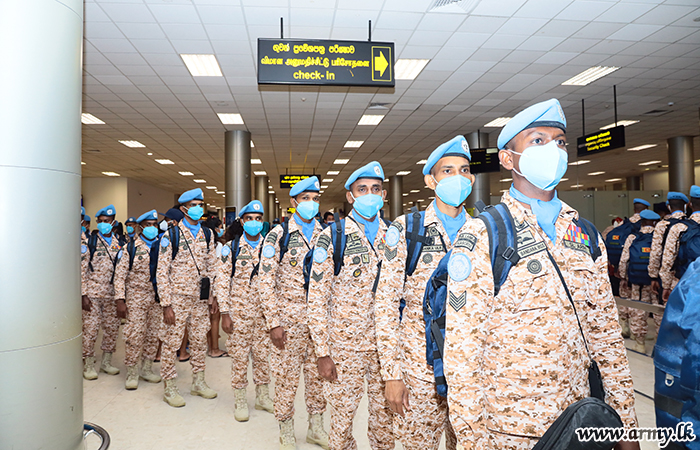 The first batch of 8 Officers and 67 departed for peacekeeping duties on 5 February. The contingent formally saluted the Army Chief in a special parade at Panagoda before the first batch left the island for Lebanon.