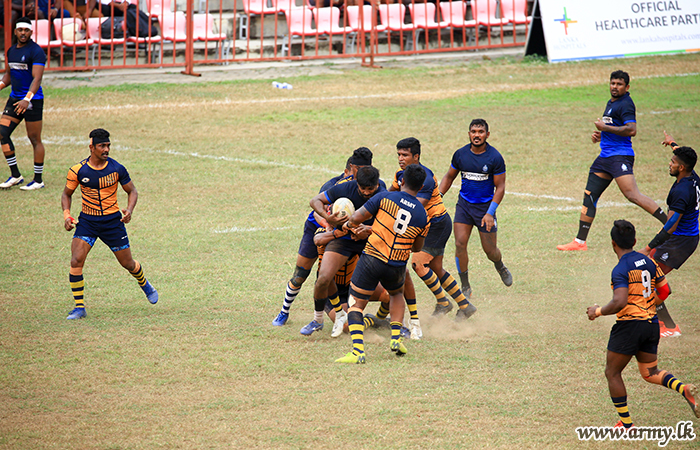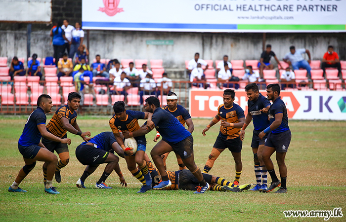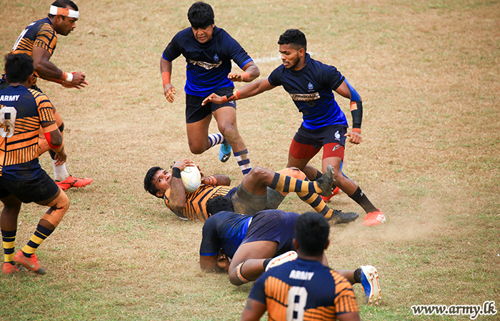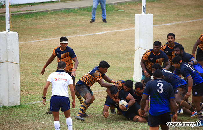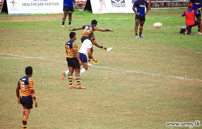 The Sri Lanka Army Sports Club competing in 'The Sri Lanka Rugby Inter Club Rugby League - 2022' at Havelock Park on Friday (4) registered their first win against their rivalry, Navy team having beaten them by 18 points.