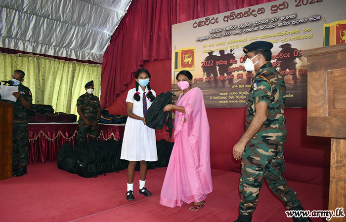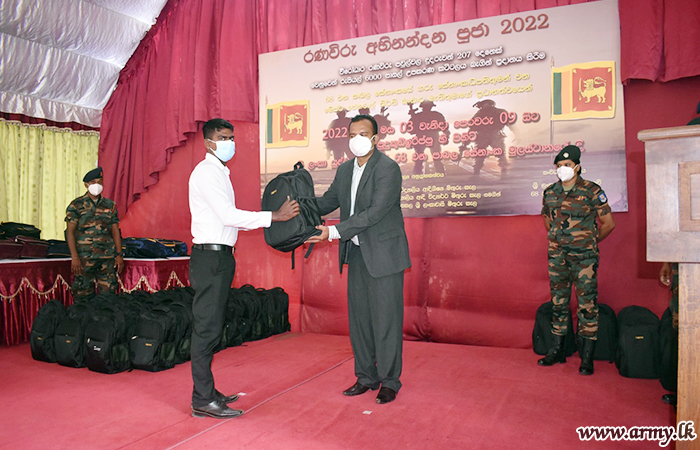 A programme, named ‘Ranaviru Abhianandana Pooja-2022', sponsored jointly by Mr Pasad Lokubalasoriya of Colombo Royal College, Colombo Royal College Old Boys' Association, Old friends of the Vidyartha College and the University of Sri Jayewardenepura gave away school accessories to 207 students of Other Rank and civil staff families serving the 68 Division on Thursday (3).