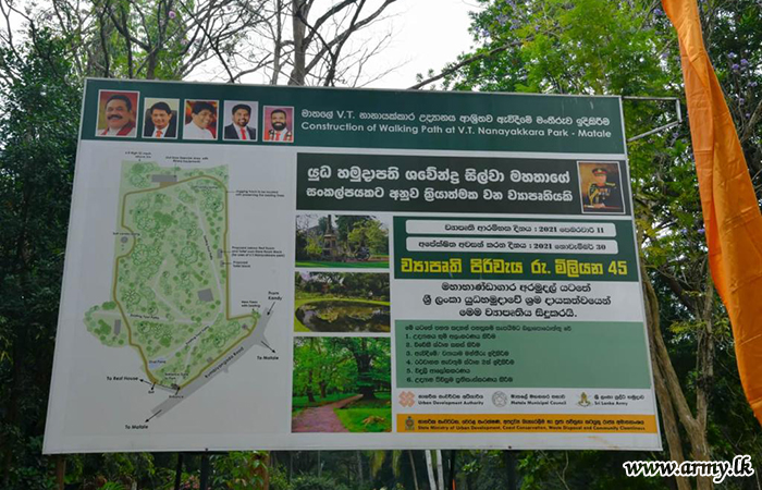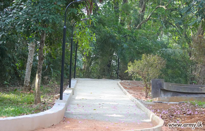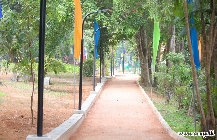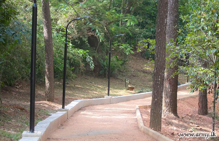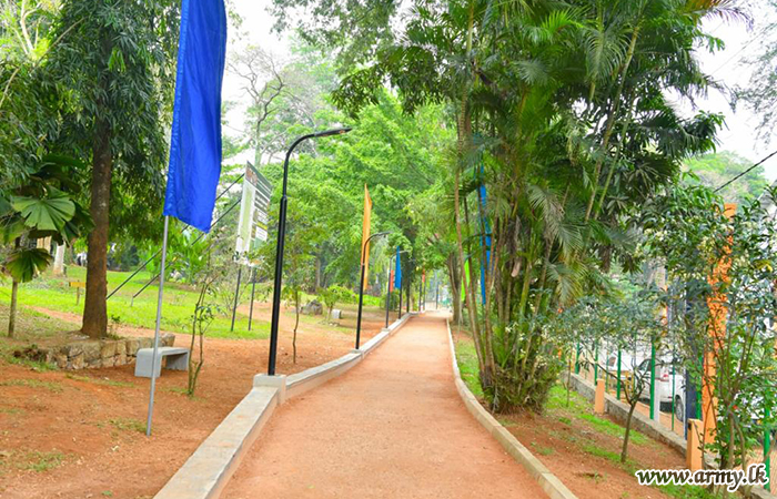 Troops of 17 Corps of Engineer Services (CES) with resources, made available by the Urban Development Authority laid this 865m meter-long walk path inside this popular park in close consultation with engineering experts after General Shavendra Silva in response to the UDA request made the Army technical resources and manpower available to the project.