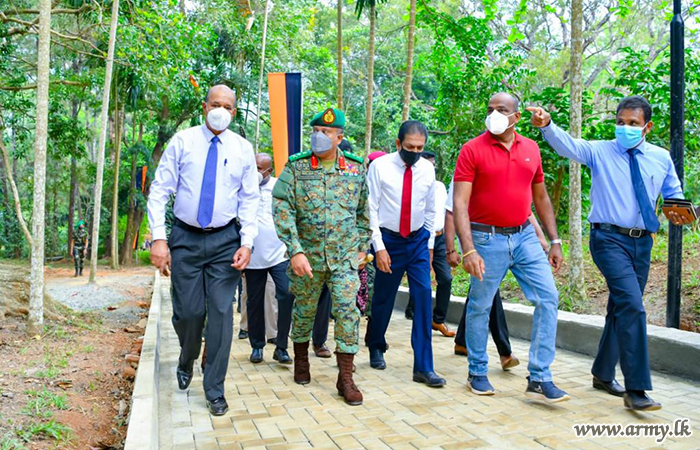 Distinguished guests soon after its formal opening inspected the entire project walking along the new pathways before a brief meeting got underway, in which the technical and manpower support, extended by Army troops for its successful completion within a short span of time came in for praise.
