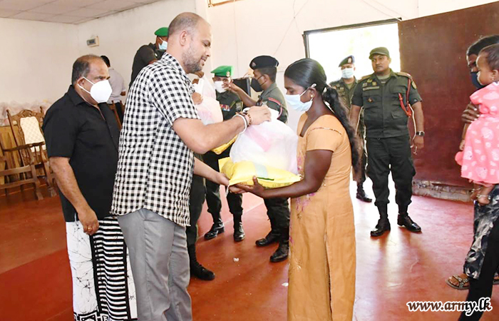 Troops of the 233 Brigade under command to the 23 Division of the Security Force HQ - East (SFHQ-E) on Saturday (16) with sponsorship given by a Kurunegala - based donor, gave away 100 dry ration packs to the value of Rs. 350,000/= to the needy families in Batticaloa District inviting the beneficiaries to the 233 Brigade Headquarters.