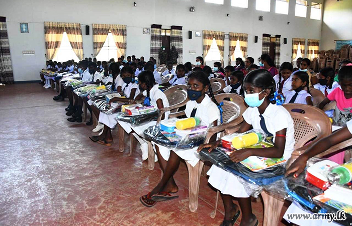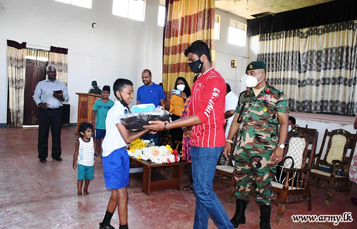 Meanwhile, thanks to the sponsorship given by the same donor from Kurunegala, 233 Brigade troops organized the distribution of a stock of school accessories among Grade 6 students at Vigneshwaram Junior School - Kathiraveli, Thirumagal Vidyalaya - Panichchankerni, Arunthathy Vidyalaya - Kandalady, Vammiraddawan Vidyalaya and Vakarei Maha Vidyalaya in Batticaloa District on 17 April 2022.