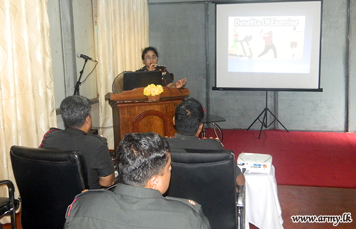 The founder of the project, Brigadier (Dr) Maureen Wijewardana, Consultant Physician at the Colombo Army Hospital delivered a comprehensive lecture and educated Army members on the importance of food habits, physical exercises, diseases, personal health habits, family health, etc.