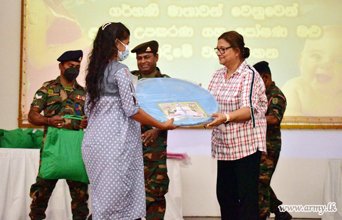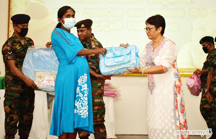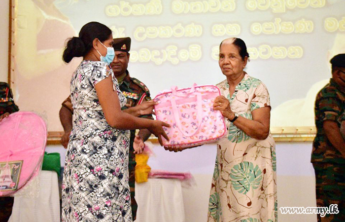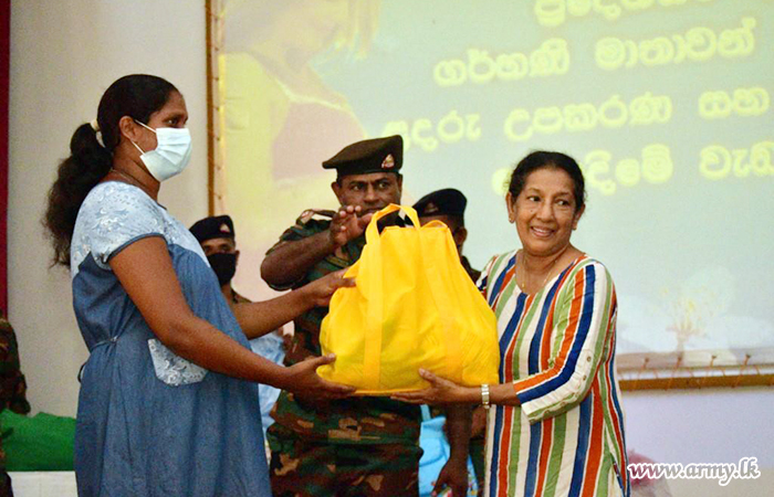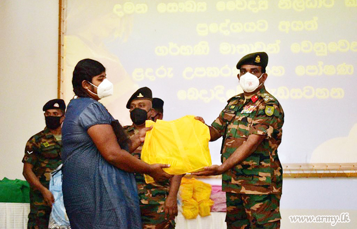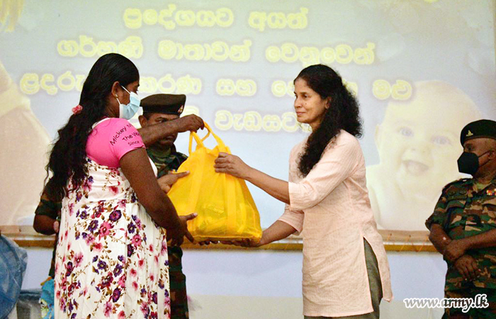 The event held at the Cultural Centre in Damana, was graced by Major General Saliya Amunugama, General Officer Commanding, 24 Division, together with Mrs Udyani Munasinghe and her relatives. The community project which benefitted those pregnant women was assisted by respective Grama Seva officials who assisted in the selection of most needed families.