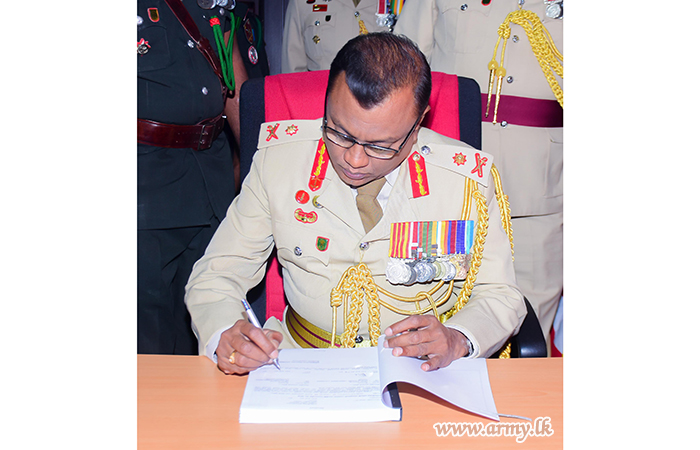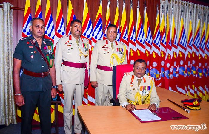 Thereafter, amid religious rites and rituals, followed by ‘Seth Pirith’ chanting of the Maha Sangha, Major General Chaminda Lamahewa assumed his duties in the new office, placing his signature symbolically in an official document at the auspicious minute to signify the acceptance of his new office.