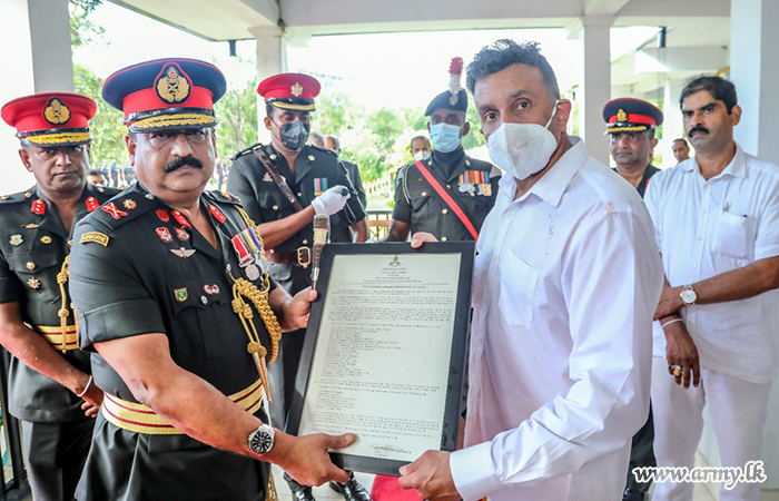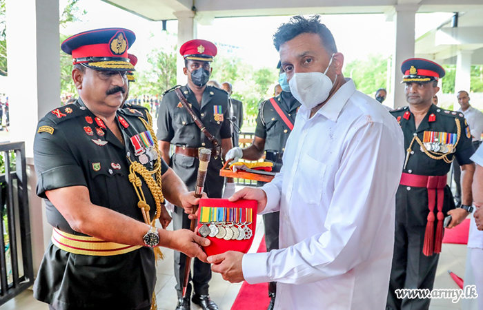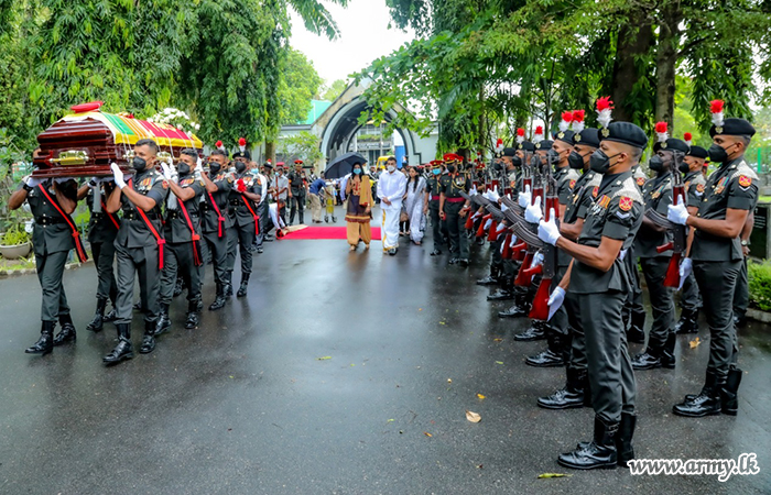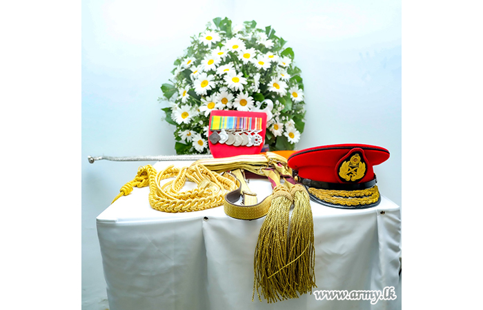Seconds after that, Major General Jagath Kodithuwakku presented the bereaved family with decorations and medals Major General Y Balarathna Raja (Retd) had earned during his illustrious career, a general tradition in the armed forces. The military funeral of late Major General Y Balarathna Raja was organized under the direct supervision of the Army Adjutant General's Branch.