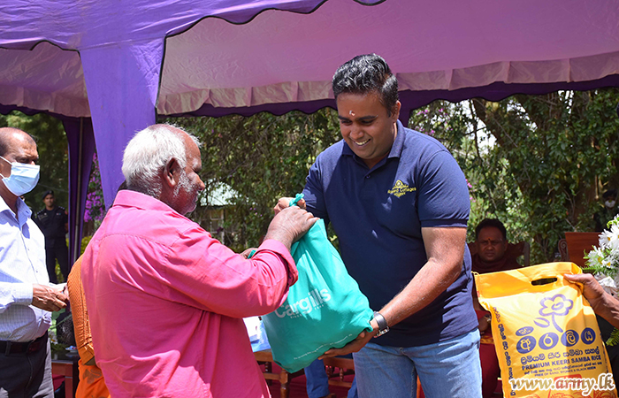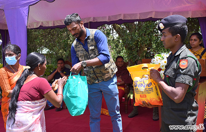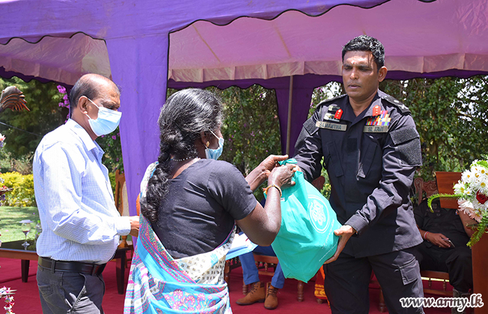 Financial assistance provided by Sri Lankan businessmen in Canada enabled Major General Samantha Silva, Commander, Security Forces -Central to distribute dry ration packs among the needy, resident inside the Kreg Estate in Poonagala, Bandarawela after their miserable plight was brought to the notice of the Security Forces.
