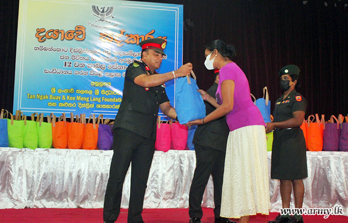The Assistant Divisional Secretary of Sooriyawewa, General Officer Commanding of 12 Division, Senior Officers and Other Ranks of the 12 Division, Government Medical Officer (GMO) at the General Hospital in Sooriyawewa, Officer in Command of the Sooriyawewa Police Station and nearly 600 beneficiaries participated in the distribution programme.