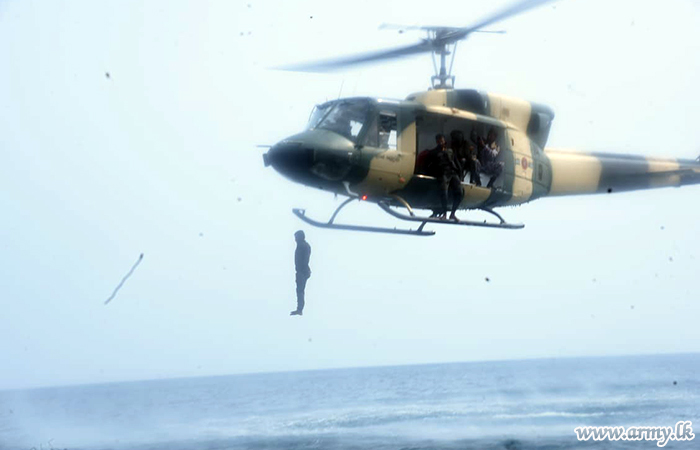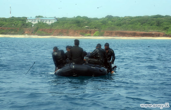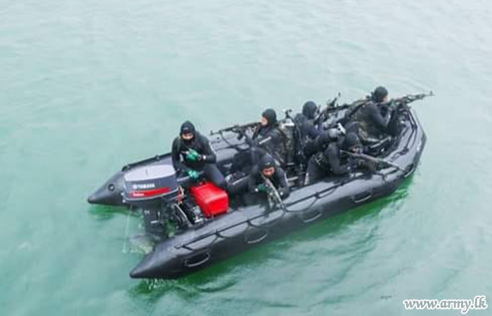 The aim of this course was to provide knowledge of landing at precise locations after dropping into boats in the waters and train SF soldiers for swimming and diving. The only diving training school of the Army is now established in Nayaru, Mullaittivu and this was the first Maritime and Aquatic Operations course, conducted in the school.
