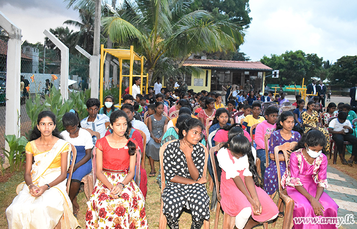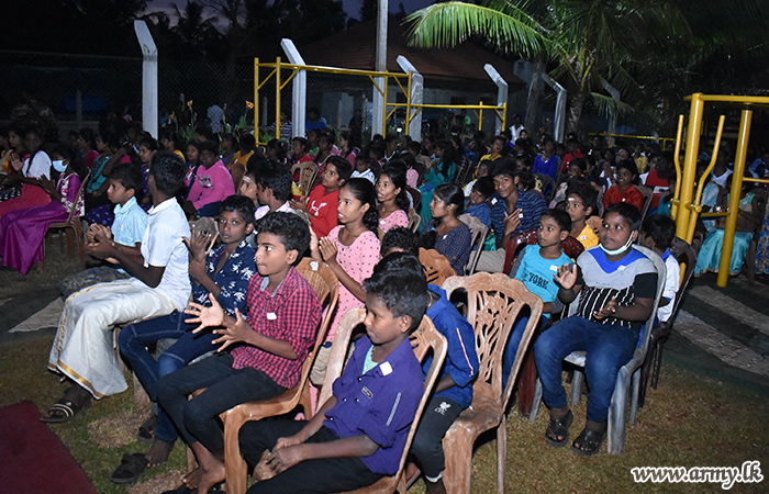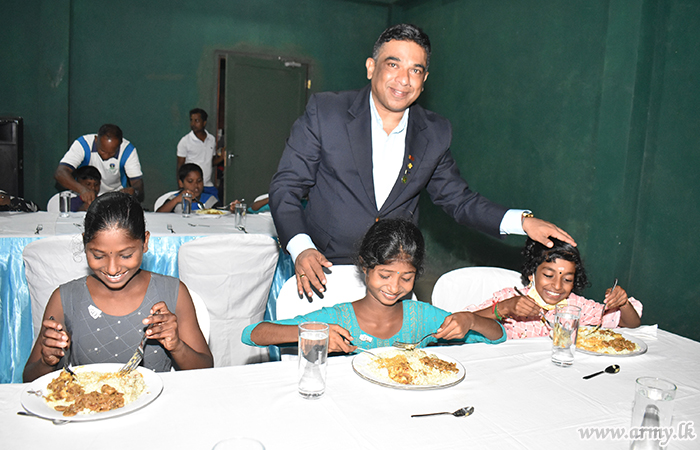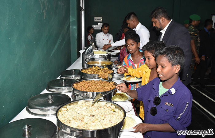 An initiative taken by the 513 Brigade HQ of the 51 Division under the Security Force Headquarters - Jaffna with the blessings of Major General Sujeewa Senarath Yapa, Commander, Security Forces - Jaffna enabled 150 school students and their parents to have a sumptuous dinner at the recently-opened CIMIC park on 22 May as one more community-oriented hospitality project.