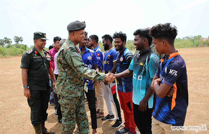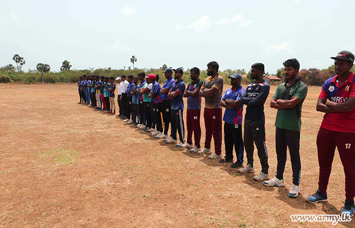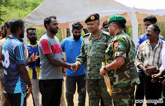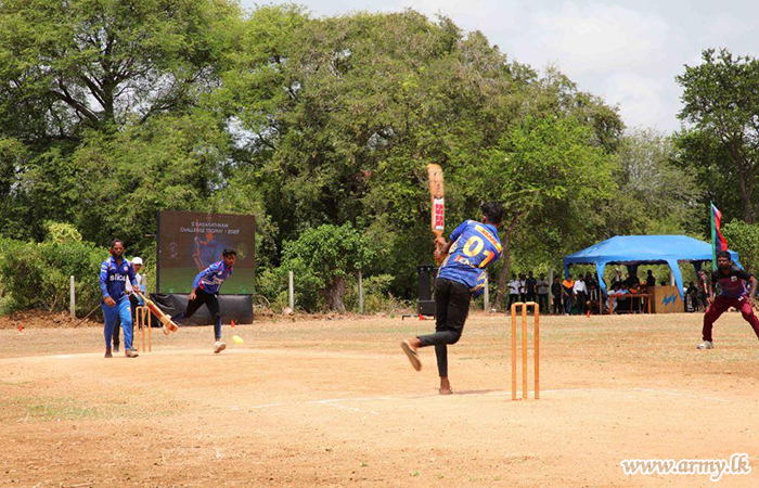 Mr Sriya Sri, Divisional Secretary of Thelippalai Divisional Secretariat, Major General Sujeewa Senarath Yapa, Commander, Security Forces - Jaffna, General Officers Commanding of 51 and 52 Divisions, Brigadier General Staff, Senior Officers, Officers, Mrs S. Nagarathnam, Grama Niladhari of Mylliddy and Other Ranks in addition to a large crowd of cricket fans watched the exciting match.