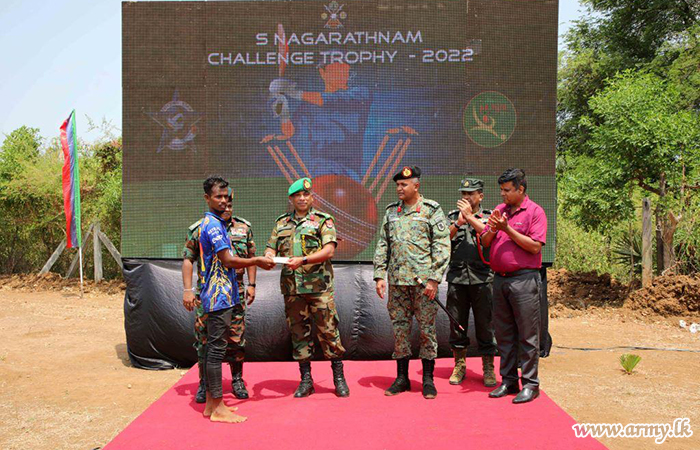 With the objective of further promoting the goodwill between young people and members of the Security Forces, the cricket match between Thyiddy Star Sports Cricket Team and Palmyra Club Cricket Team generated much enthusiasm among cricket lovers in the area who flocked the grounds to witness the finals. After a very close tussle, Thyiddy Star Sports Cricket Team emerged champions having scored 85 runs for 1 wicket in 9 overs against their rival’s 79 runs for 8 wickets in 12 overs.