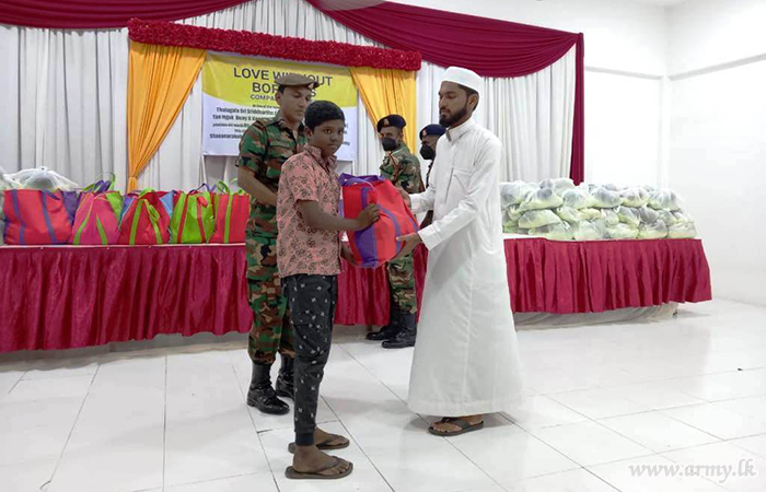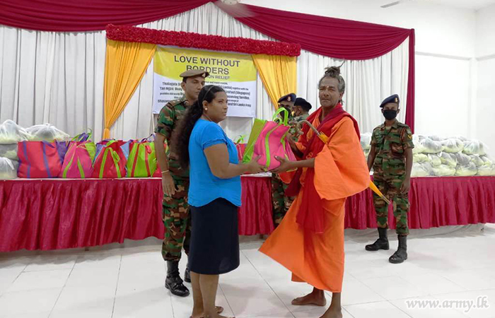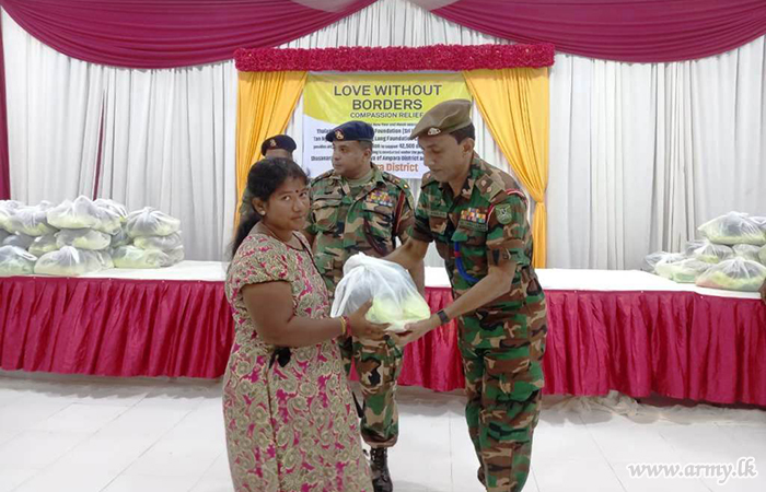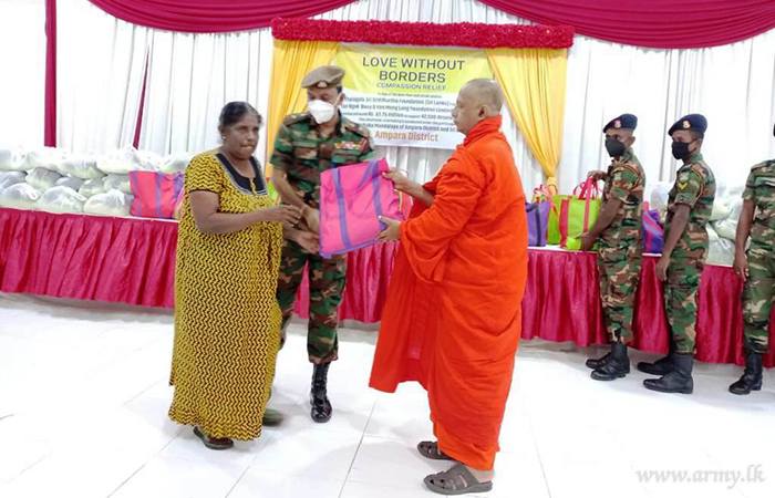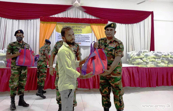 Troops of 18 Vijayabahu Infantry Regiment of the 24 Division organized the distribution of those relief packets at multi-function hall in Karthivu town. Representatives of donors, including Ven Ethimale Ananda Thero, the secretary of the Ampara District Thalagala Sri Siddhartha Foundation and respective Grama Seva officials were present during the event.