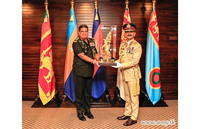 Symbolizing the goodwill and sound working relations, he presented a memento to Lieutenant General Vikum Liyanage. The gesture was reciprocated.