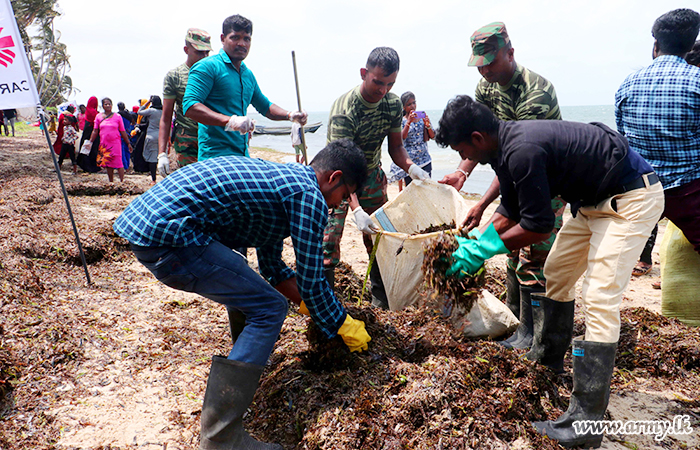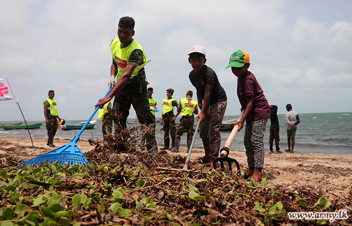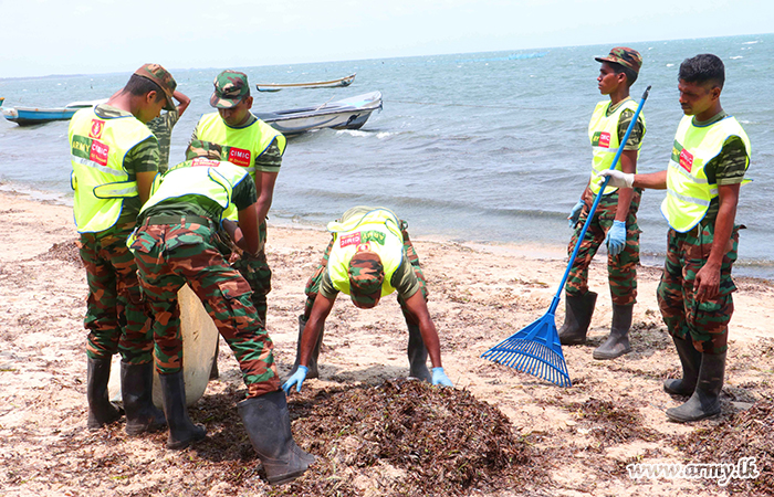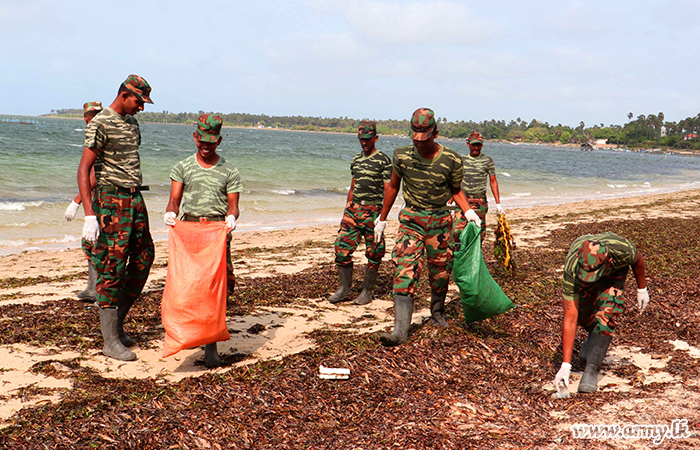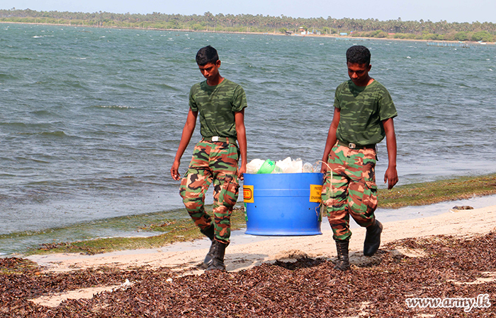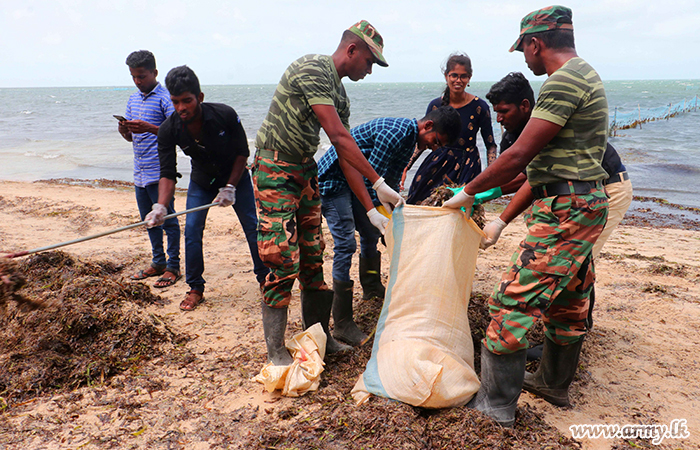 Accordingly, troops of the Security Force Headquarters - Jaffna and local civilians together organized a clean-up operation along the coastal belt of Charity Beach, Myliddy Beach and Beach areas in general area aiming to encourage the people to keep these beautiful beaches free from polythene and other plastic related pollutants.