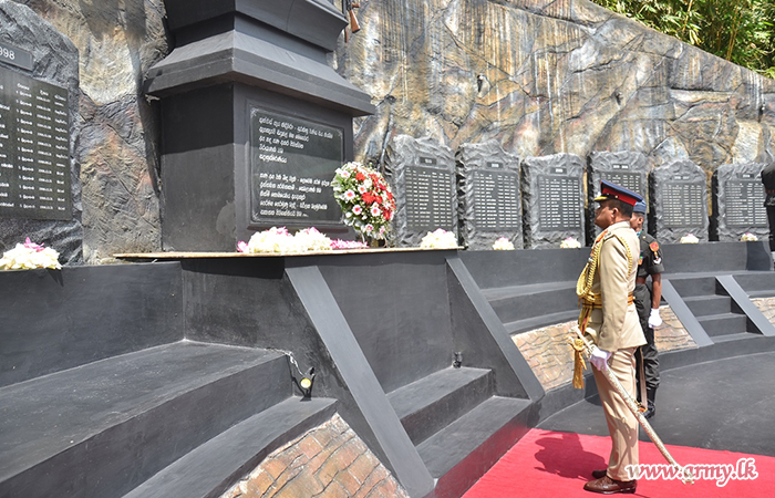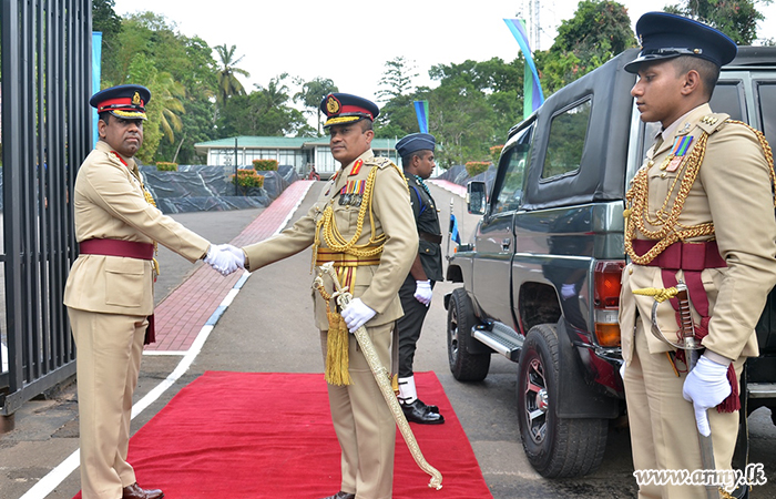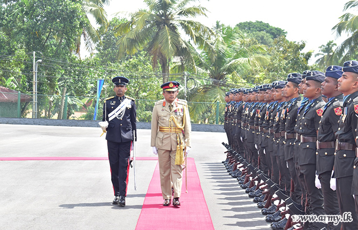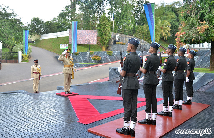 The Colonel Commandant was greeted and welcomed by the Centre Commandant Brigadier Sudantha Fonseka before he was accorded a Guard Turnout at the main entrance. Thereafter, Colonel Commandant placed a floral wreath at the fallen war heroes’ monument in remembrance of fallen war heroes before he was invited to receive the salute in the Guard of Honour at the Regimental Centre parade ground.