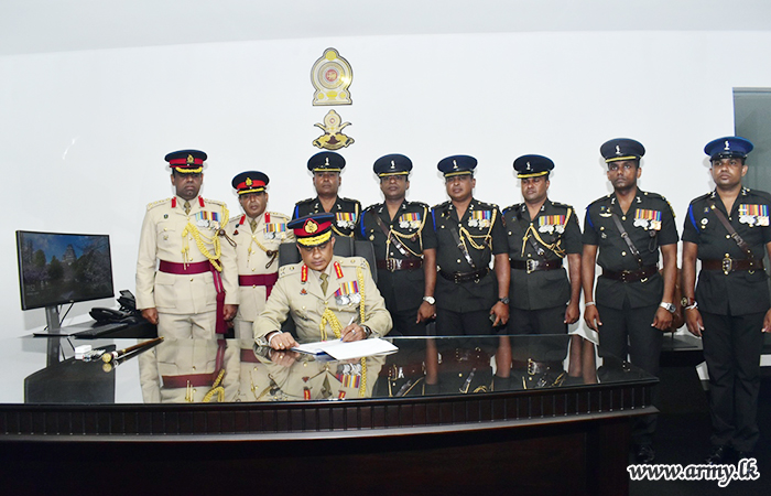 Afterwards, the new Colonel Commandant placed his signature in a formal document amidst religious observances to signify the acceptance of the new office. He also addressed all officers at the SLSC Regimental HQ which was transmitted virtually across all SLSC camps. The day’s proceedings ended with an All Rank lunch at the SLSC Regimental HQ.