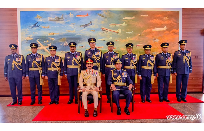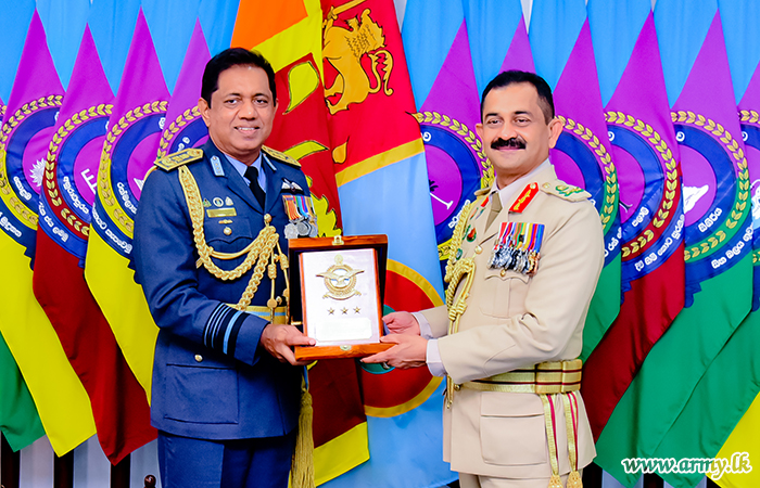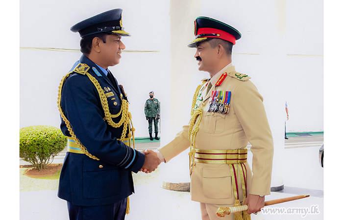 Lieutenant General Vikum Liyanage, Commander of the Army who took over office recently as the 24th Commander of the Army made his first courtesy visit to the Sri Lanka Air Force Headquarters on Thursday (9) and called on Air Marshal Sudarshana Pathirana, Commander of the Air Force.