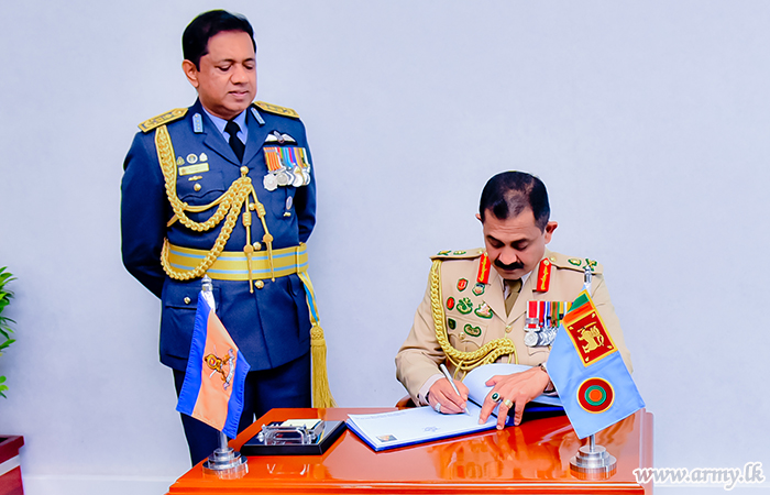 The Air Force Commander offering his compliments, best wishes on his new office awarded a special memento to the new Army Chief and the gesture was reciprocated. Before his departure, Lieutenant General Vikum Liyanage was also requested to leave his thoughts in the visitors’ book.