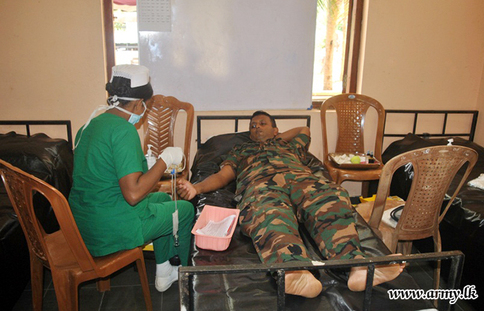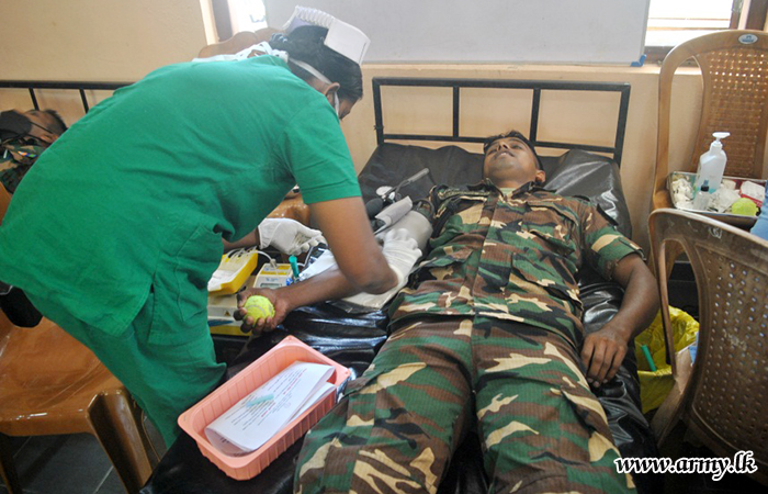A team of doctors of the Ampara Base Hospital Blood Bank with staff and equipment launched the blood collecting process. A total of 65 Army Personnel, including 2 Officers and 63 Other Ranks of the 242 Brigade and under command battalions donated their blood to make the project a success.