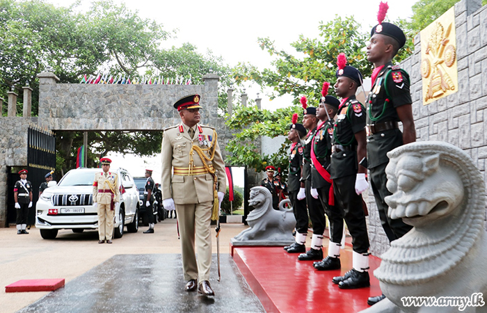 He was saluted in a Guard of Honour at the Security Forces Headquarters - Jaffna by the troops of 12 Gemunu Watch.