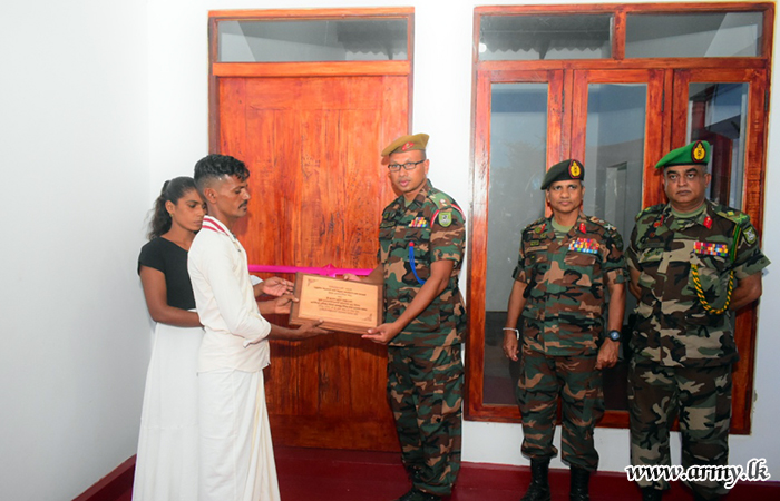 On the day of warming of the new house, Major General Priyantha Jayawardena, Commander, SF-East who graced the occasion as the chief guest handed over keys of the new house to the beneficiaries amid 'Seth Pirith' chanted by monks to bless the occasion.