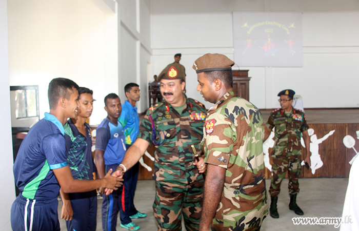 In order to popularize the game of badminton among the youth in the Jaffna peninsula, 55 Division troops under the guidance of the General Officer Commanding, 55 Division, Major General Prasanna Gunarathne conducted a badminton training programme on 11 June 2022 at the 55 Division’s auditorium.