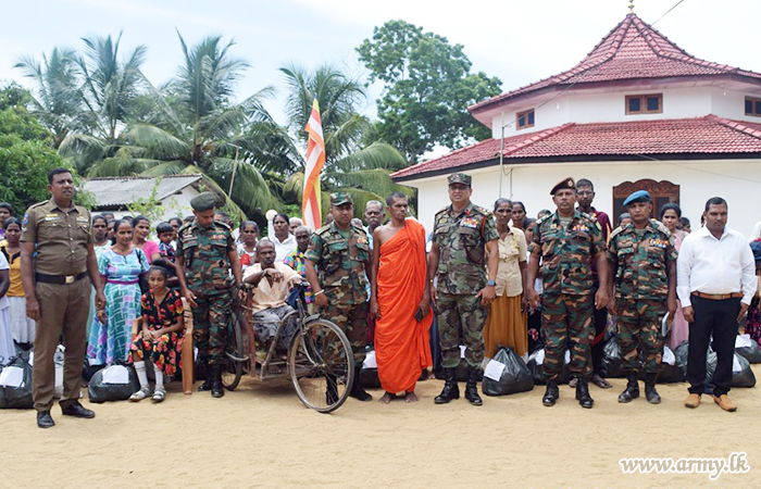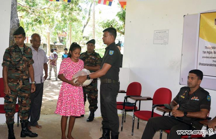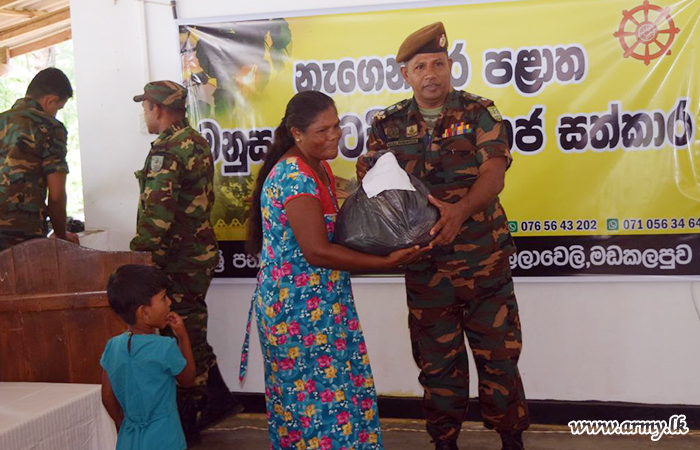 11 (V) Sri Lanka Sinha Regiment (SLSR) troops of the 231 Brigade coordinated the distribution of dry ration packs to needy families living in Gemunupura and Kachchikkudi Grama Seva Divisions in Batticaloa District in consultation with respective Grama Seva officials.
