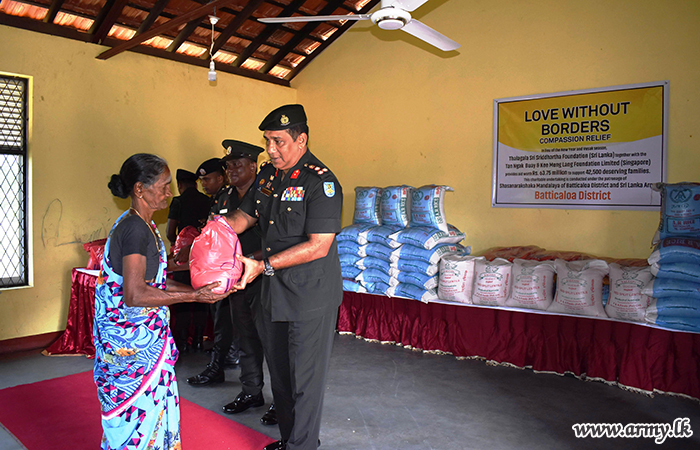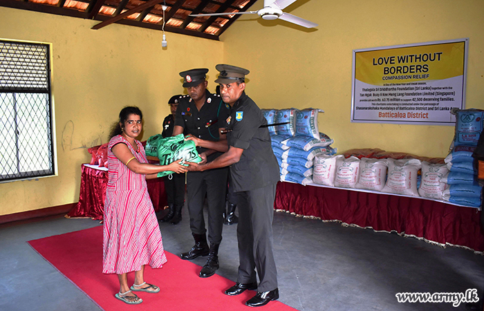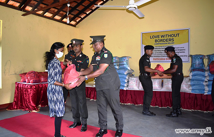 4 Gemunu Watch troops of the 231 Brigade under the 23 Division of the Security Force HQ-East with patronage, extended by the Sri Siddhartha Foundation of Ven Thalagala Sri Sumanarathana Thero and the 'Meng Leg Foundation Limited' in Singapore organized a free distribution of dry ration packets among 70 families, resident in the general area of Unnachichiya after inviting them to the Unnachchiya Kanuwela Central College on 06 June 2022.