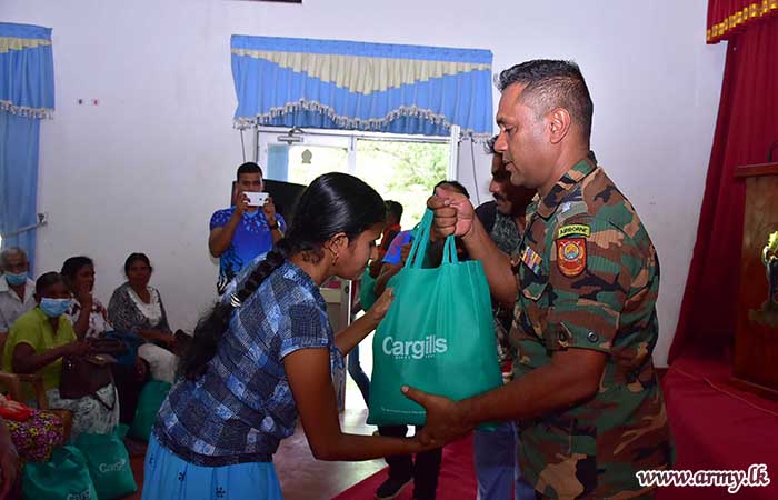 During this programme, headed by the Commander, Security Forces- Central, 7 Sri Lanka Signal Corps (SLSC) troops assisted in the distribution of those relief packs. Grama Seva officials also were present at the location.