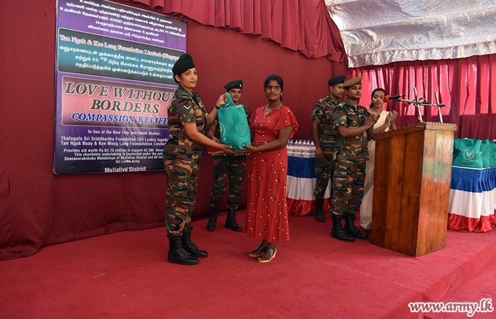 South-based Sri Siddhartha Foundation in Thalagala in collaboration with Tan Ngak & Kee Meng Leng Foundation Limited in Singapore, supported by the Saasanarakshaka Bala Mandalaya of Kalutara, enthusiastically engaged in relief work in the past couple of months at the request of the Army on 11 June 2022 went to Mullaittivu area and gave away 350 dry ration packs, inclusive of 05 kg of rice, one 500 g dhal packet, 01 Coconut and also 03 soya meat packets to poor people.
