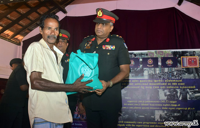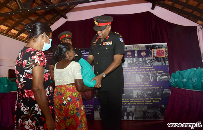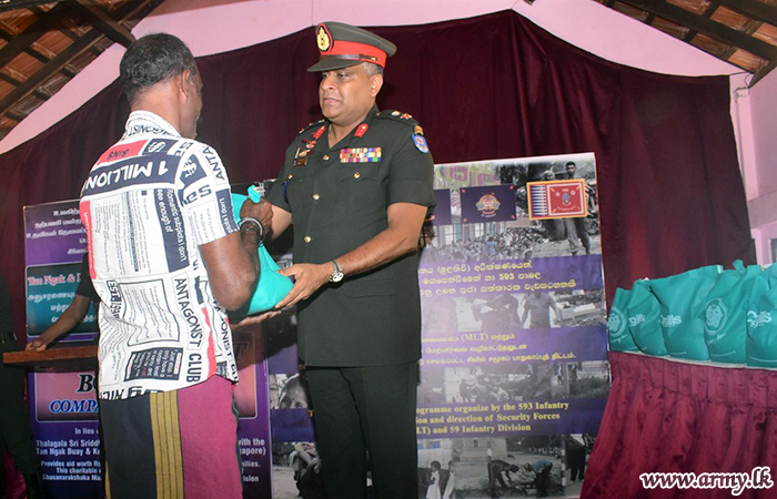 The programme was conducted under directions of Major General Sanjaya Wanasingha, Commander, Security Forces - Mullaittvu. 59 Division's GOC and 593 Brigade Commander were also associated with the distribution.