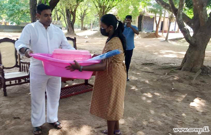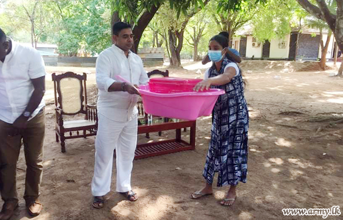 Troops of the 532 Brigade under the 53 Division on account of Poson Full Moon Poya with sponsorship, provided by the 'Yutukama' charity organization distributed essential items among 15 deserving pregnant women resident in the general area of Mawanagama, Dehiattakandiya on Poson Poya day (14 June 2022).