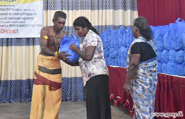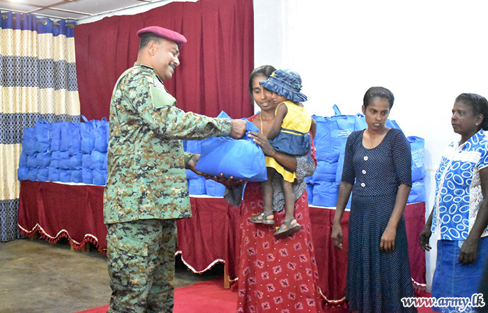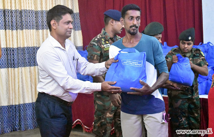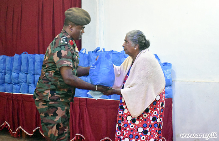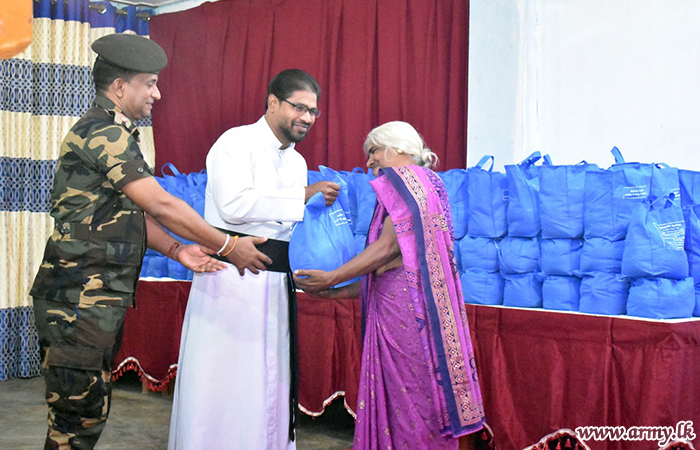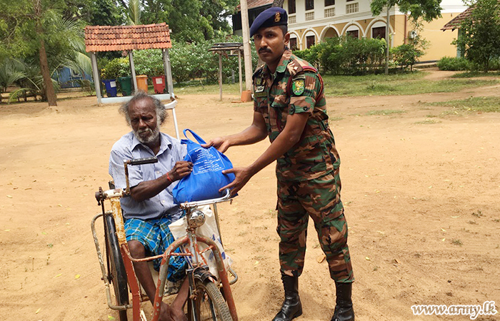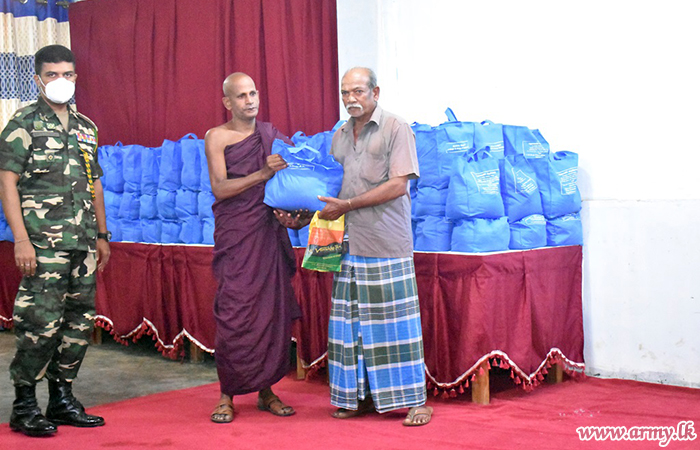 Civilians residing in Madu and Vengala Settikulam areas in Mannar District with economic difficulties were the recipients of Army-initiated relief dry ration packs with sponsorship, provided by Talagala Sri Siddhartha Foundation of Ven Talagala Sumanaratana Thero and Tan Ngak Buay & Kee Meng Lang Foundation Limited, Singapore on Sunday (19).