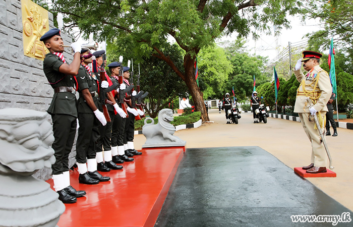 On his arrival at the venue on the anniversary day, he reviewed the Guard Turn Out and subsequently received the salute of the Guard of Honour, presented by troops of 11th Battalion Sri Lanka Light Infantry, presented in his honour.