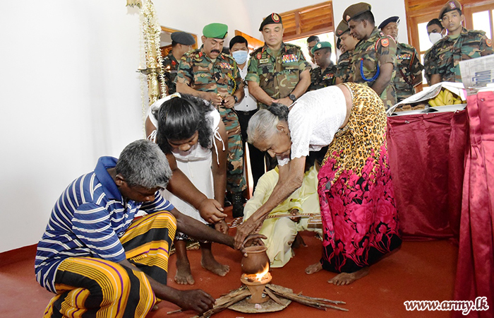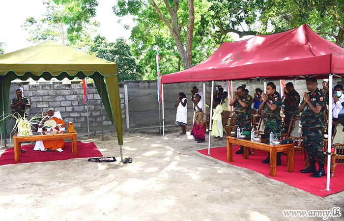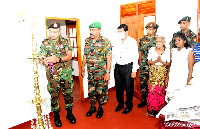 The house-warming ceremony was attended by the donor and the General Officer Commanding, 12 Division Major General Lanka Amarapala where religious rites and other rituals were observed. Several furniture pieces, needed for the family were also delivered to the family on the same occasion.