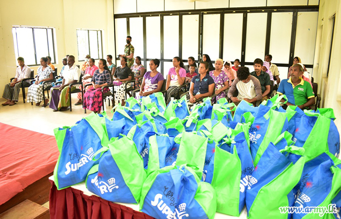 A stock of dry ration packs, jointly donated by Mrs Sujeewa Nelson, former President Army Seva Vanitha Unit (ASVU) and General Shavendra Silva, Chief of Defence Staff was distributed among 25 families, resident in the Central Camp area in Ampara.