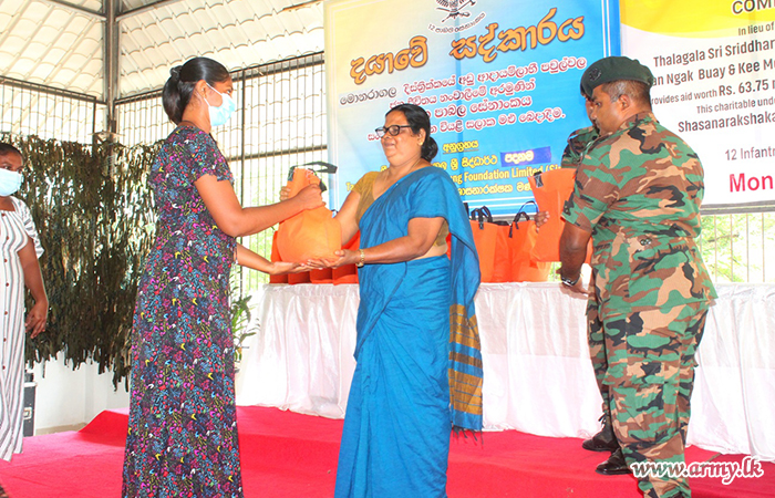 Launching one more community-oriented project with sponsorship, provided by Talagala Sri Siddahrtha Foundation of Ven Talagala Sumanaratana Thero and Kalutara Shasanaraksha Balamandalaya, 12 Division troops under command to the Security Force HQ- Central distributed dry ration packs to 200 needy families after inviting them to the Moneragala Public Library on 17 June.